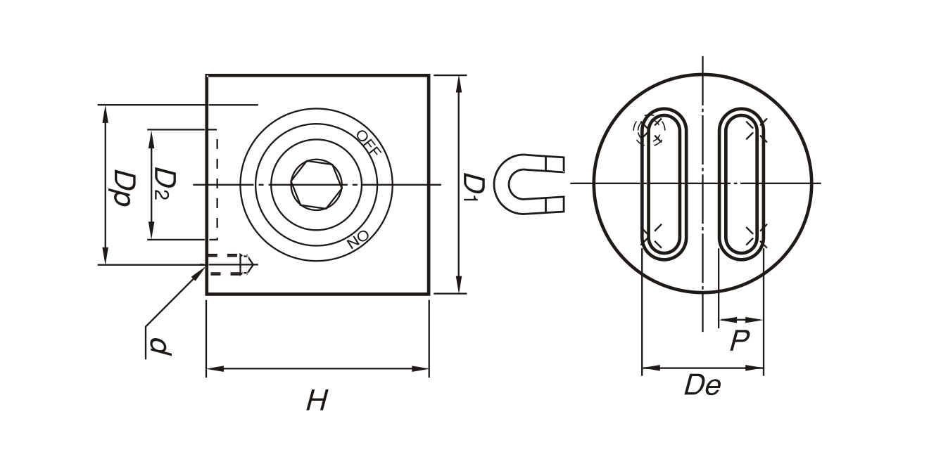 | D1 | De | P | Dp | D2 | d | H | |||