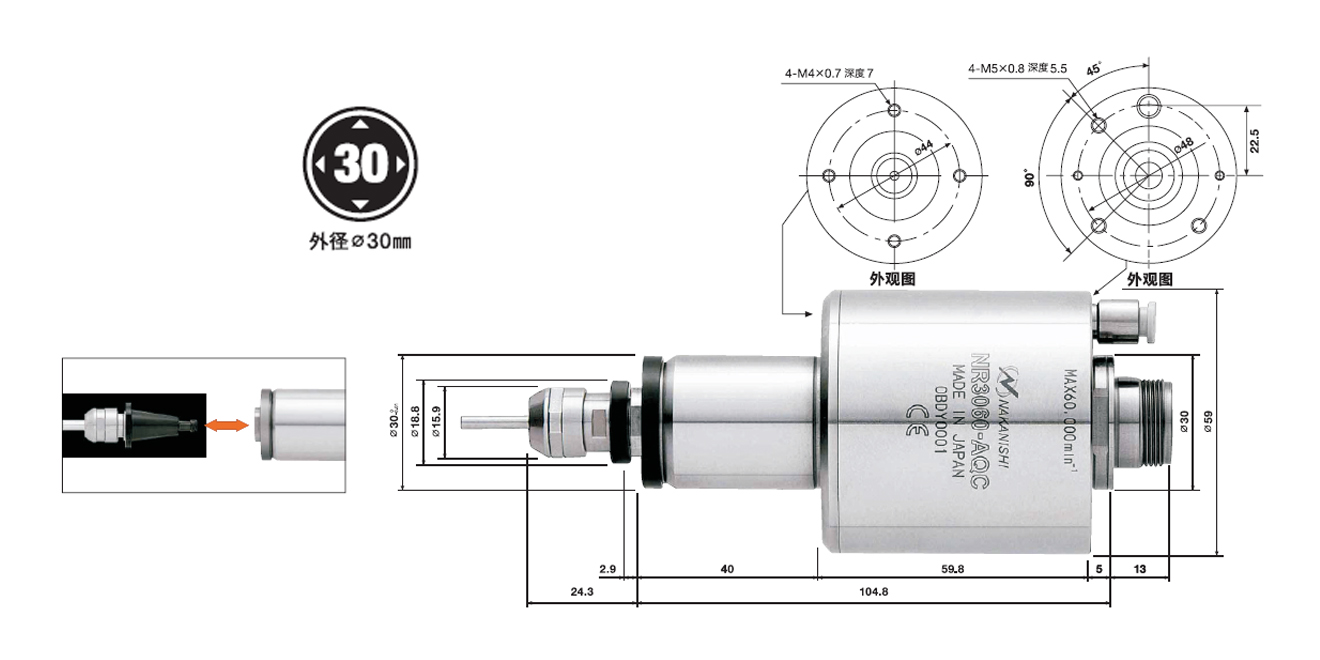 | NR3060-AQC | 9220 | φ30 mm | 1μm以內(nèi) | 60000 min-1 | 0.6 MPa |
