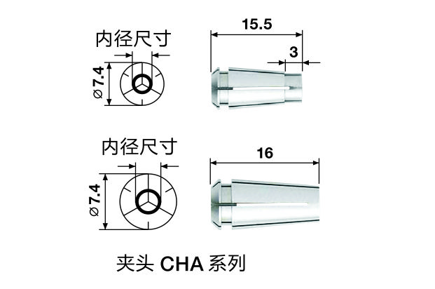 | 夾頭 | 編號 | 型號 | 內徑mm | 兼容型號 |