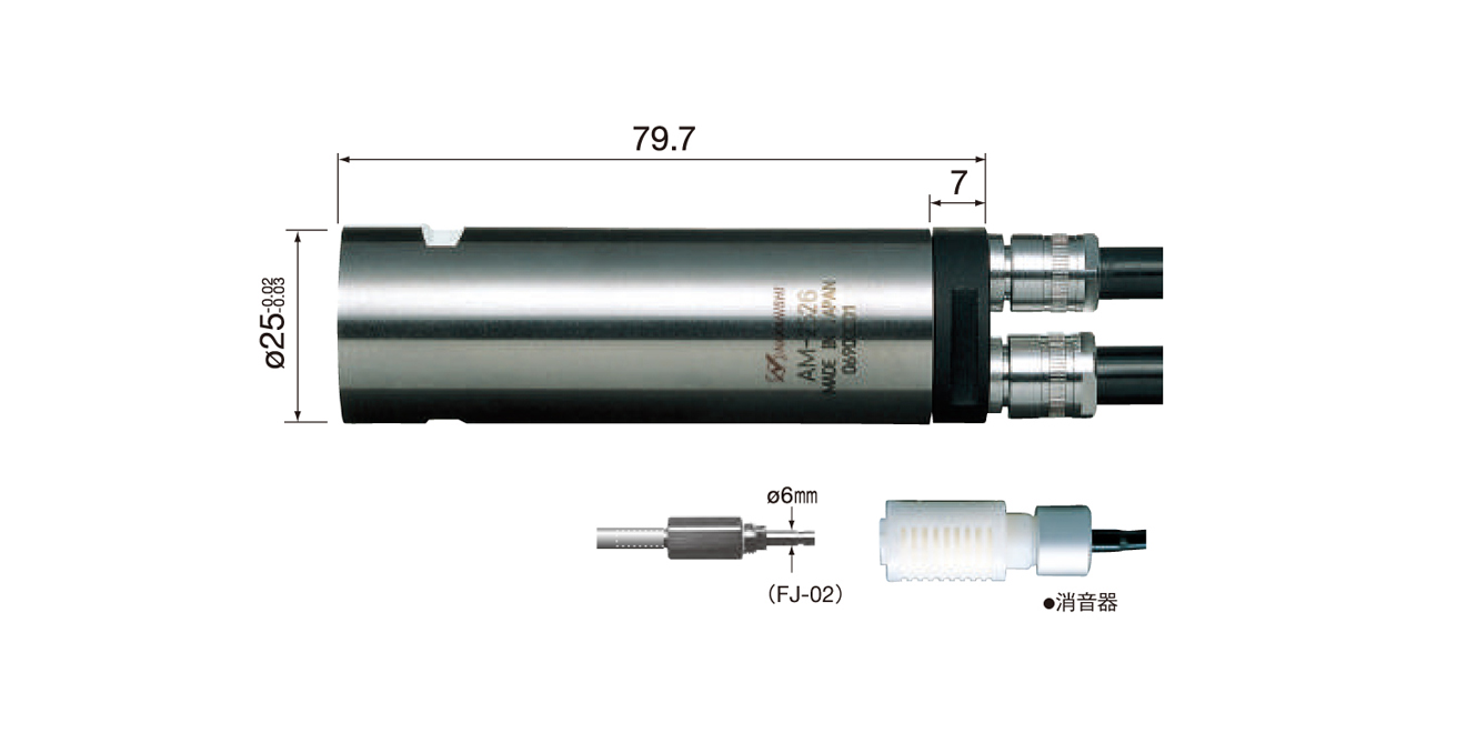 | AM-2526R | 1801 | φ25 mm | 24000min-1(0.5MPa) | 130W | 0.3~0.5MPa | 205 Nl/min | 220g (不含軟管) |