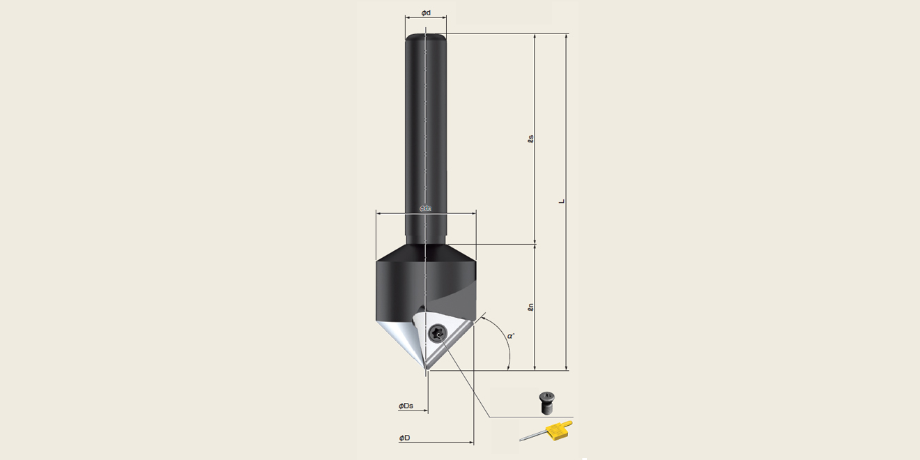 • 鉆床可使用的倒角刀,進行倒角加工,尤其適合小直徑倒角