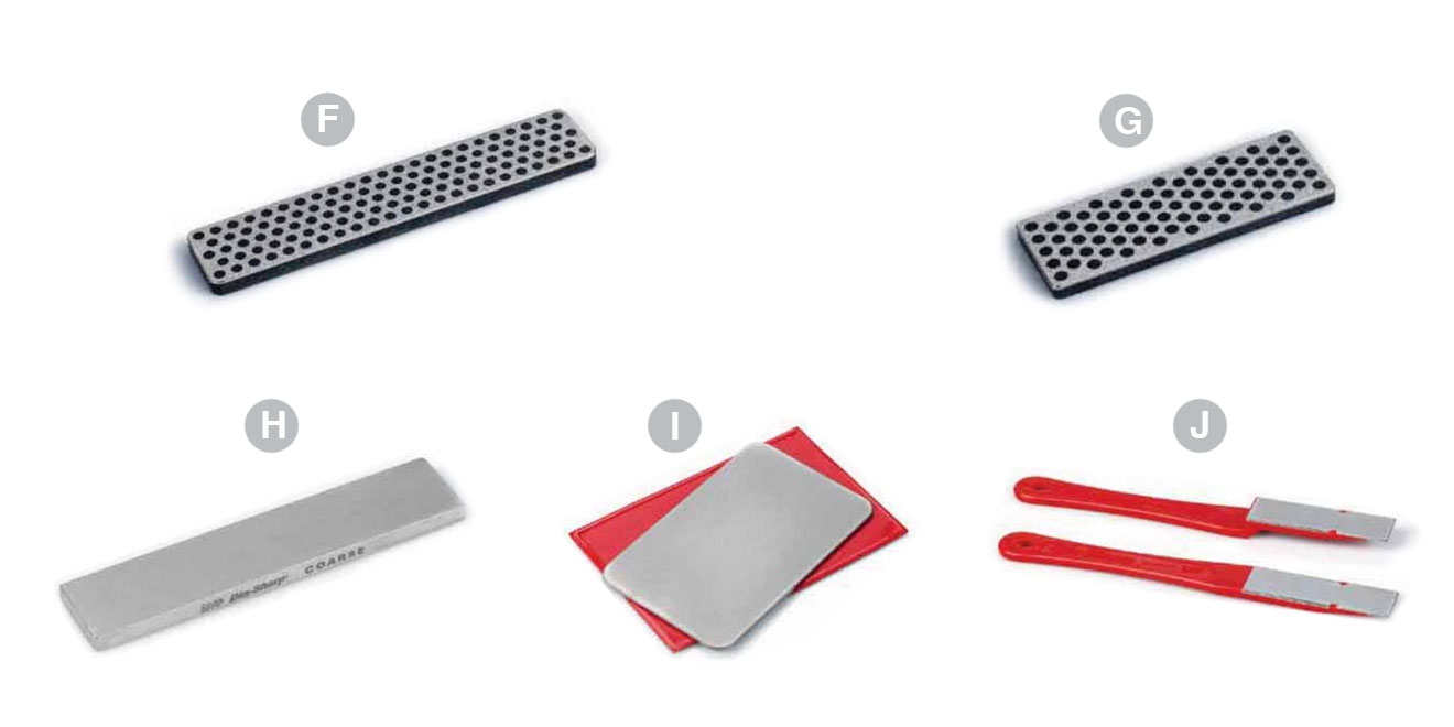 • 滑雪專用磨刀石可提供4種粒度。G型70mm迷你鉆可單獨購買或選擇3件組合套裝
