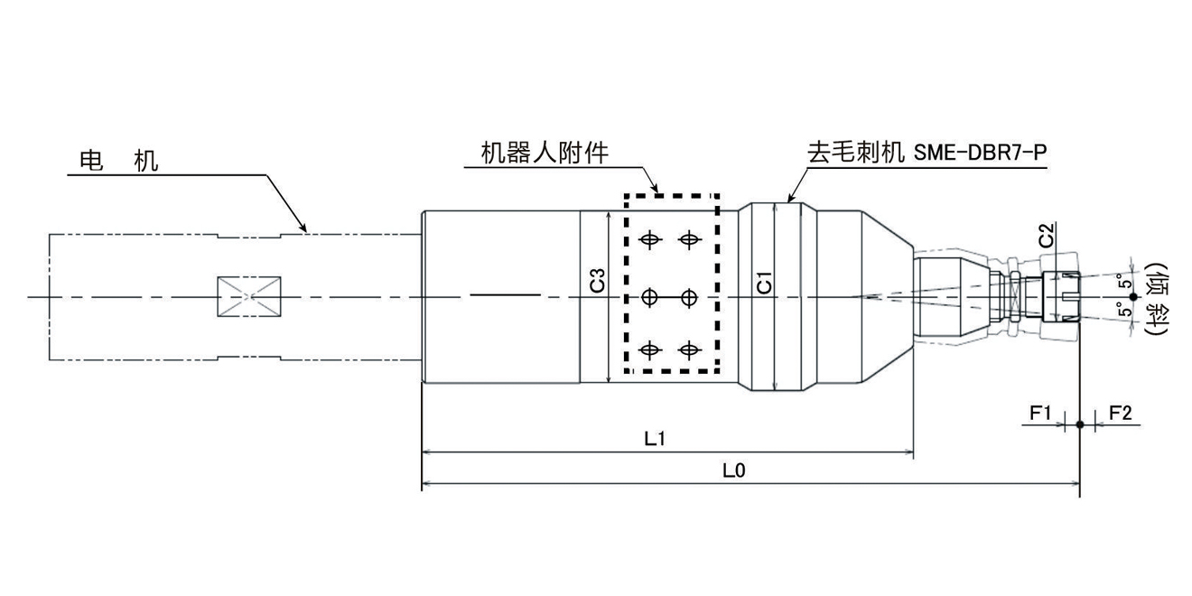配合NAKANISHI E4000系列高速主軸在機(jī)械手臂,特殊場合專用。前端可任意方向偏擺5°,軸向后縮5mm,對應(yīng)3坐標(biāo)曲面