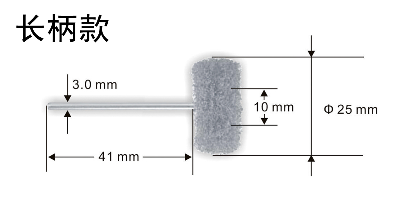 • 百潔布鍍磨粒研磨輪,夾持桿φ3mm,分為長桿型L=41mm;短桿型L=37mm,固定盤φ10mm,百潔布研磨輪徑φ25/30/40mm