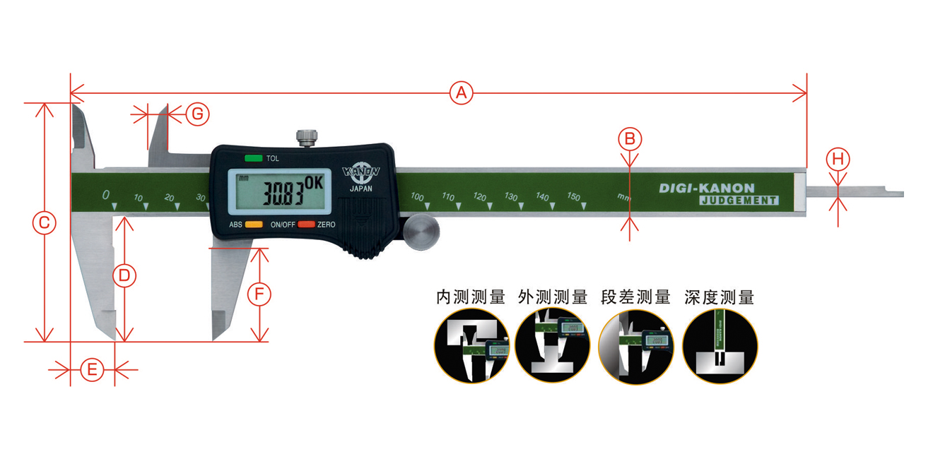 | 型號(hào) | 測(cè)定范圍 | 最小讀值 | 誤差 | 全長(zhǎng) | A | B | C | D | E | F | G | H |