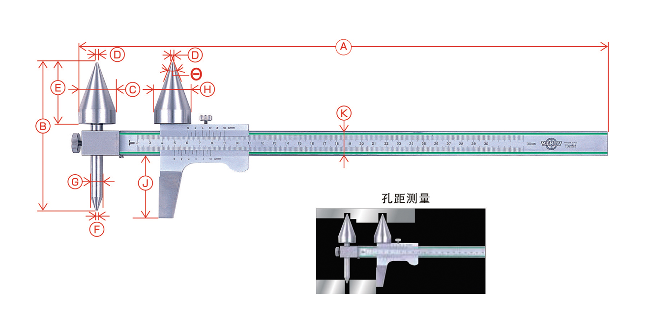 • 主尺測(cè)頭垂直移動(dòng),可在不同直徑的孔之間進(jìn)行測(cè)量